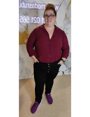 Vaquero largo de color negro, elástico, cierre solo con botones, el principal en forma de corazón con brillitos