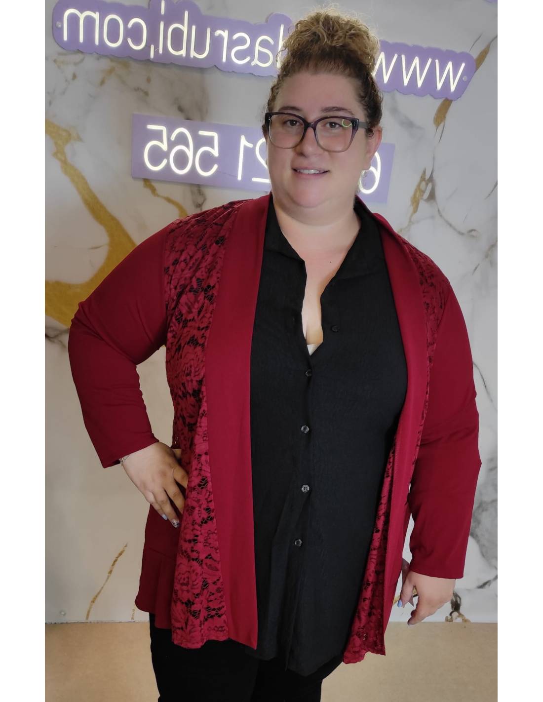 Mide de largo 81 cm, 69,5 cm de sisa y 55 cm de manga