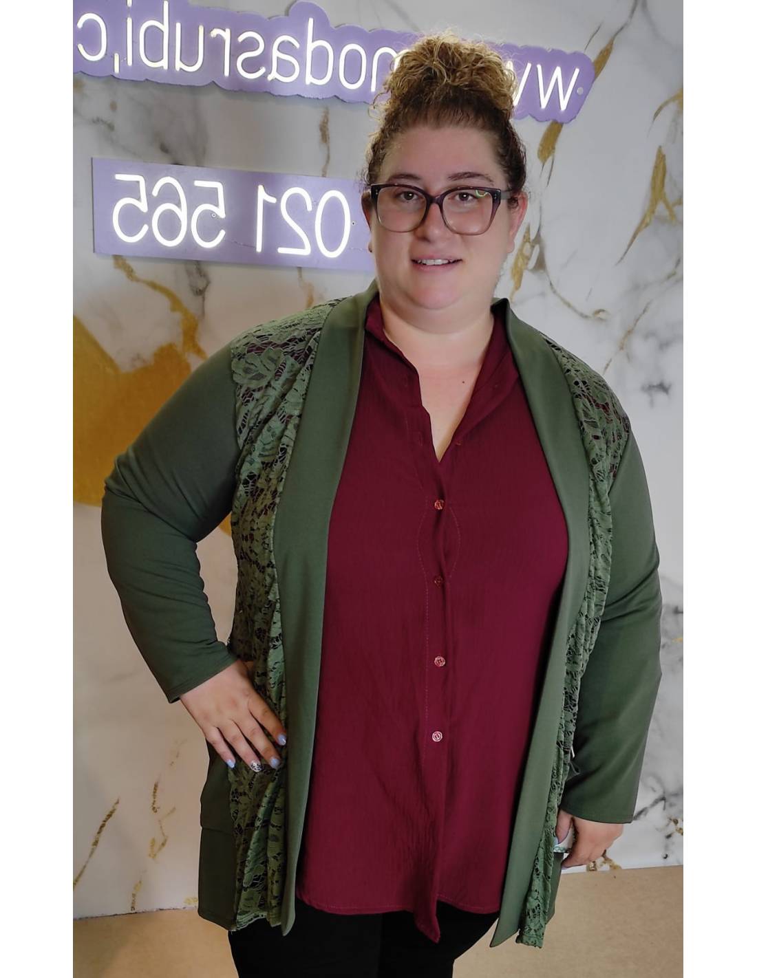 Mide de largo 81 cm, 69,5 cm de sisa y 55 cm de manga