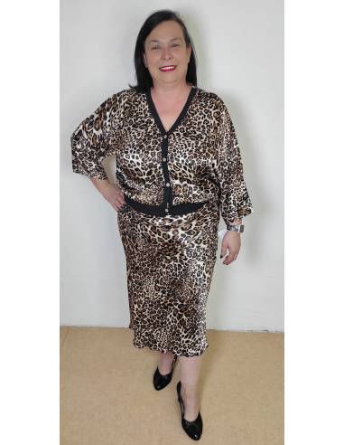 Falda de satén, estampada de animal print, con cintura de goma, corte midi