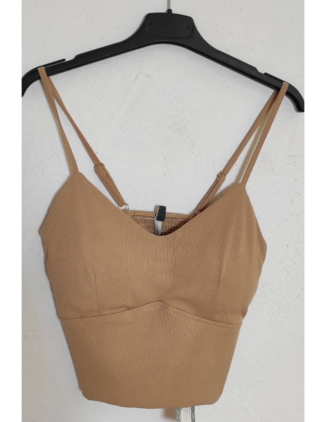 Top de canalé, con tirante regulable, tiene cascos pero se les puede quitar goma en la espalda
