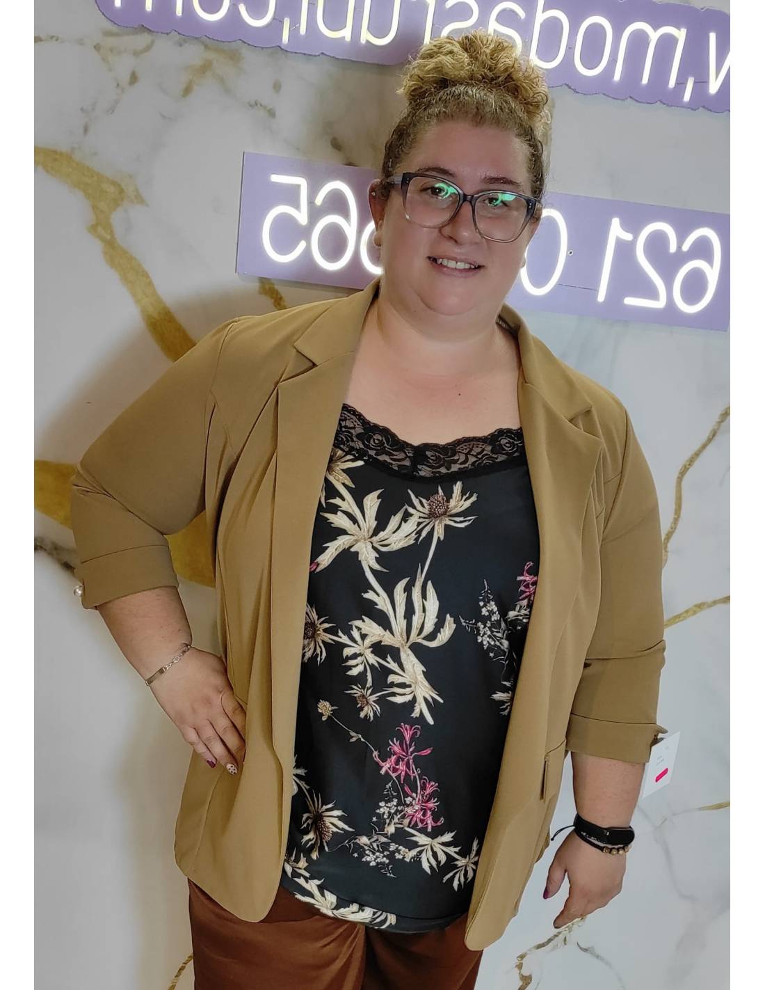 Blazer de lycra con, solapa de adorno en el delantero, adorno de perla en la manga