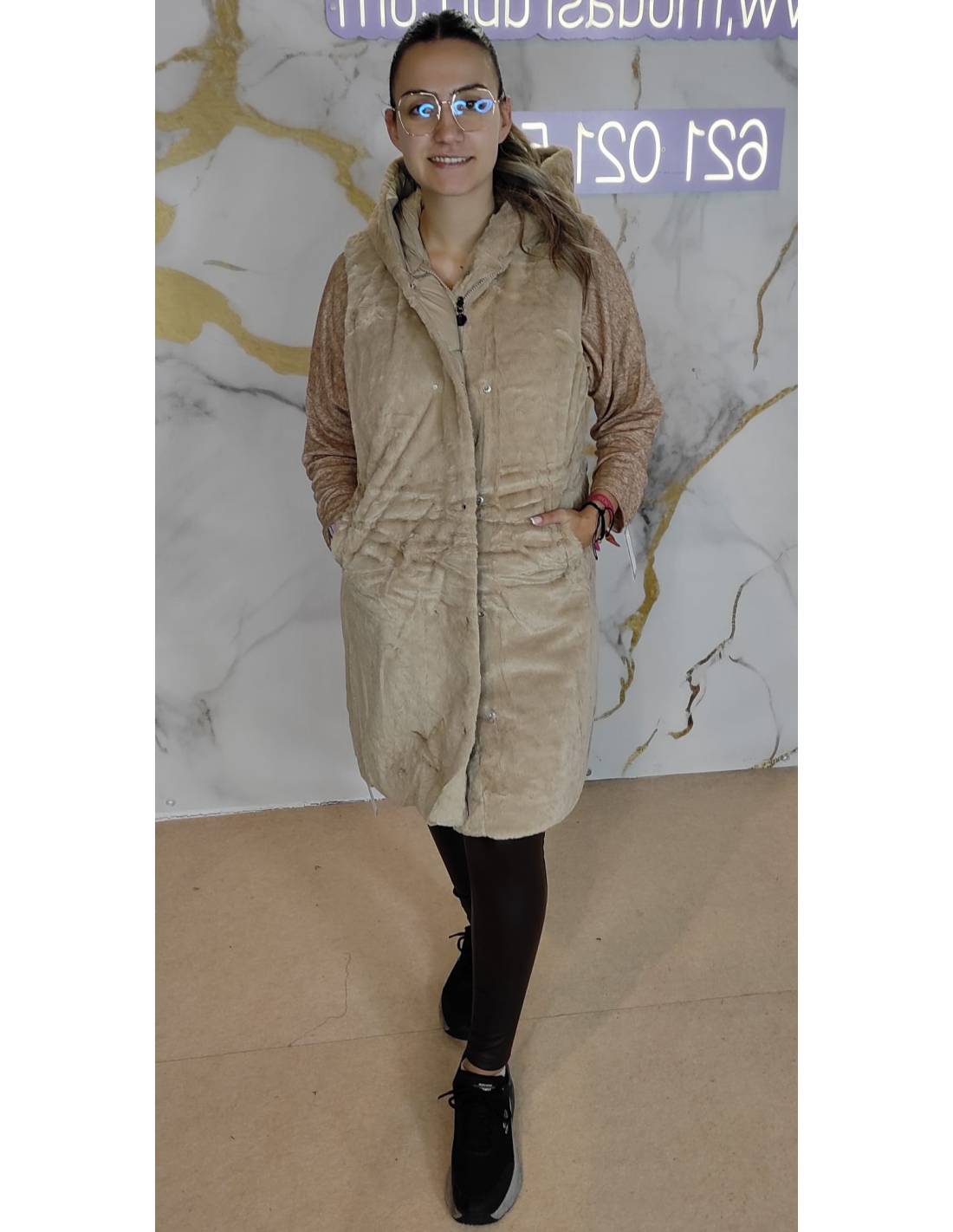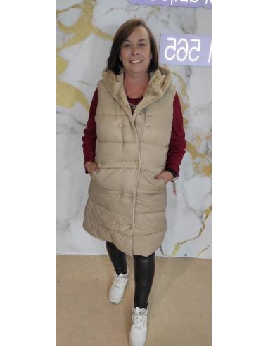 Chaleco enguatado reversible con pelito, con gorro y bolsillos abrochado con cremallera