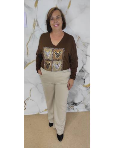 Pantalón tipo chándal de pata recta, cintura de goma, tachuelas en el lateral con bolsillos