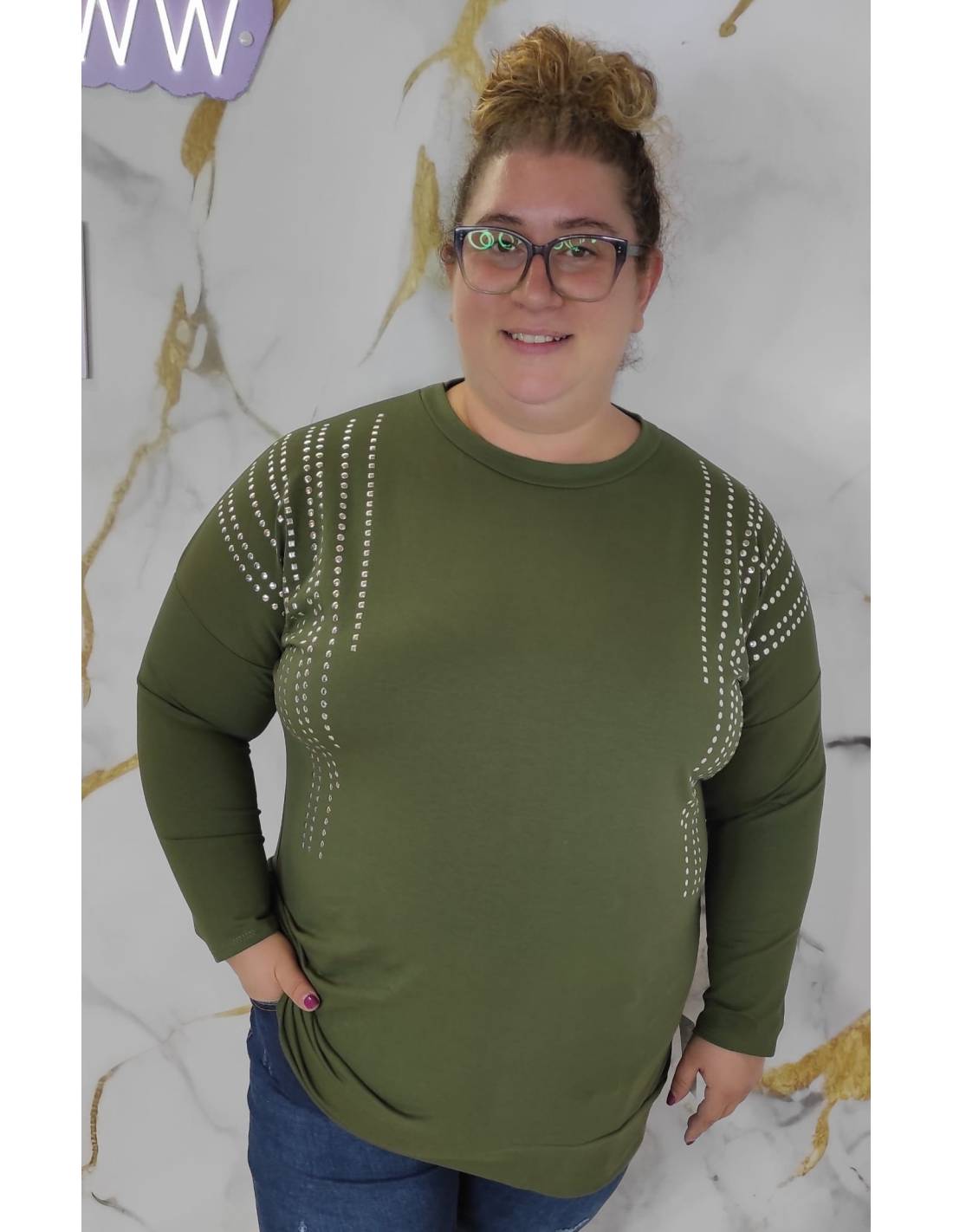 Camiseta de punto de lana con brillos en las mangas