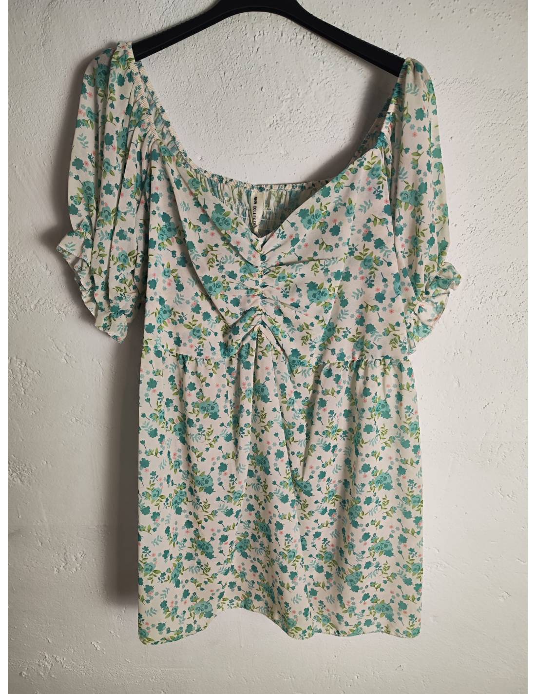 Blusa de gasa, estampada de flores, con goma sobre los hombros para acomodar como quieras.