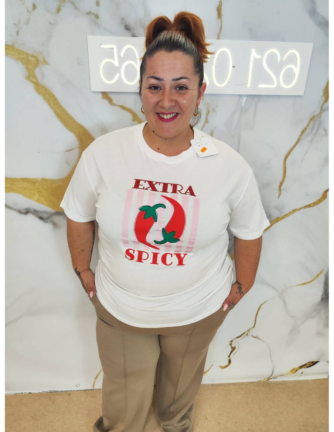 Camiseta básica de manga corta, en color blanco con dibujo en el delantero