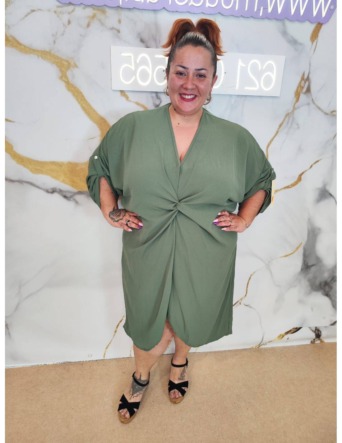 Vestido de crep, midi, manga larga que se puede recoger, escote en pico, y fruncido debajo del pecho, por la parte de delante corte en triángulo más corto