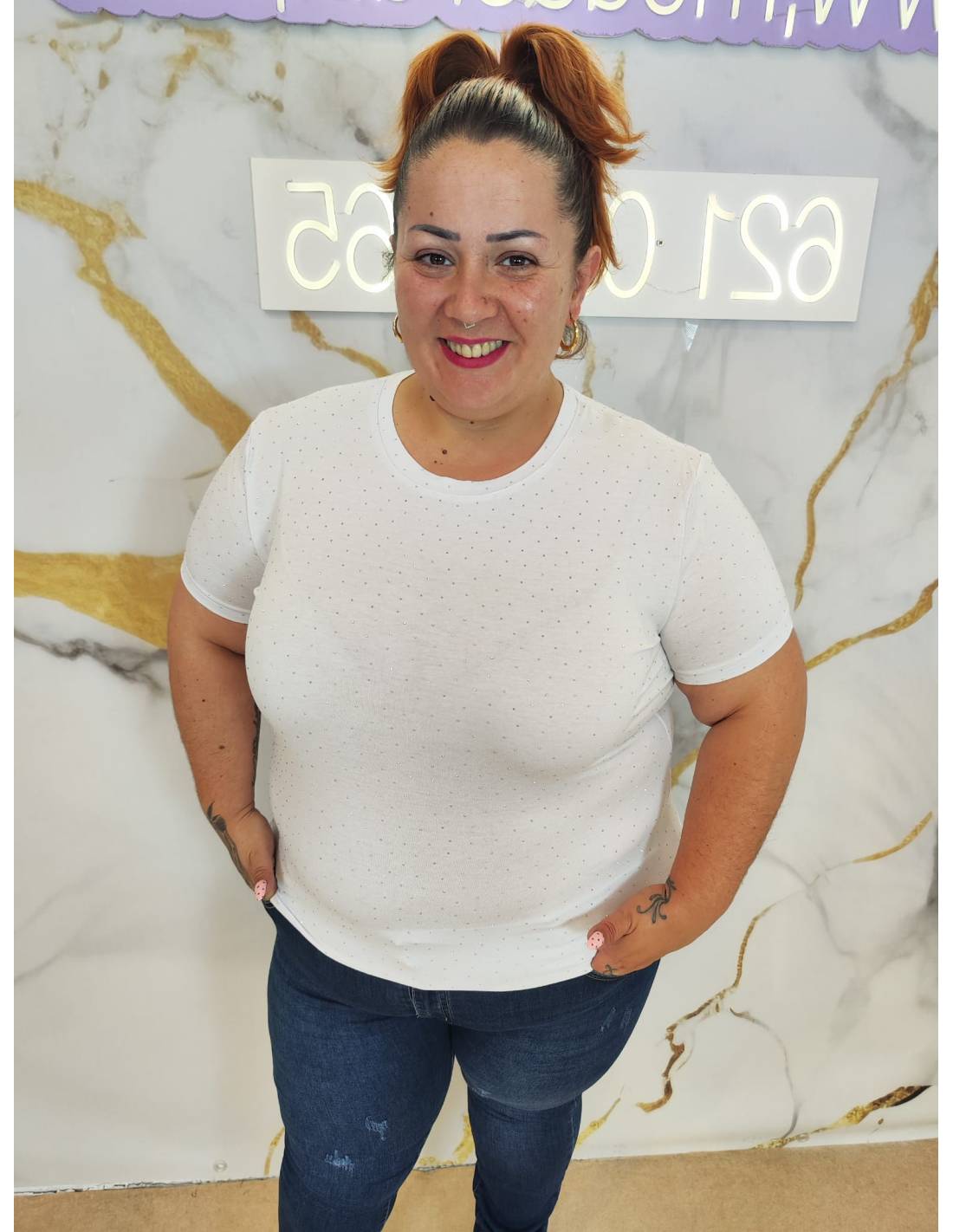 Camiseta básica de manga corta, con brillos